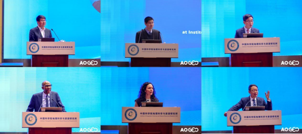 會(huì)議開幕式于3月27日上午舉行,由地理資源所王紹強(qiáng)研究員主持。中國(guó)科學(xué)院地理資源所所長(zhǎng)孫福寶、GEO中國(guó)秘書處主任高翔、GEO南非聯(lián)合主席肯尼·坦扎、GEO秘書處主任亞娜·格沃艮,AOGEO中、日、澳、韓聯(lián)合主席出席并致辭。中國(guó)科學(xué)院地理資源所周成虎院士、AOGEO聯(lián)合主席顧行發(fā)教授、華北水利水電大學(xué)劉俊國(guó)校長(zhǎng)、馬來(lái)西亞科學(xué)院院士卡斯圖麗·德維·坎尼亞、南非科學(xué)技術(shù)與創(chuàng)新部空間科學(xué)主任圖米桑·莫迪奧萊等專家作主旨報(bào)告。孫福寶在致辭中指出,地理資源所作為本次研討會(huì)的承辦方,始終是GEO與AOGEO工作的堅(jiān)定支持者和深度參與者,將進(jìn)一步發(fā)揮在數(shù)據(jù)資源、模型方法與區(qū)域應(yīng)用方面的優(yōu)勢(shì),與亞大區(qū)各成員深化交流合作,推動(dòng)對(duì)地觀測(cè)從“數(shù)據(jù)產(chǎn)品”向“決策就緒”轉(zhuǎn)型,共同應(yīng)對(duì)氣候變化、糧食安全與生態(tài)保護(hù)等全球性挑戰(zhàn)。